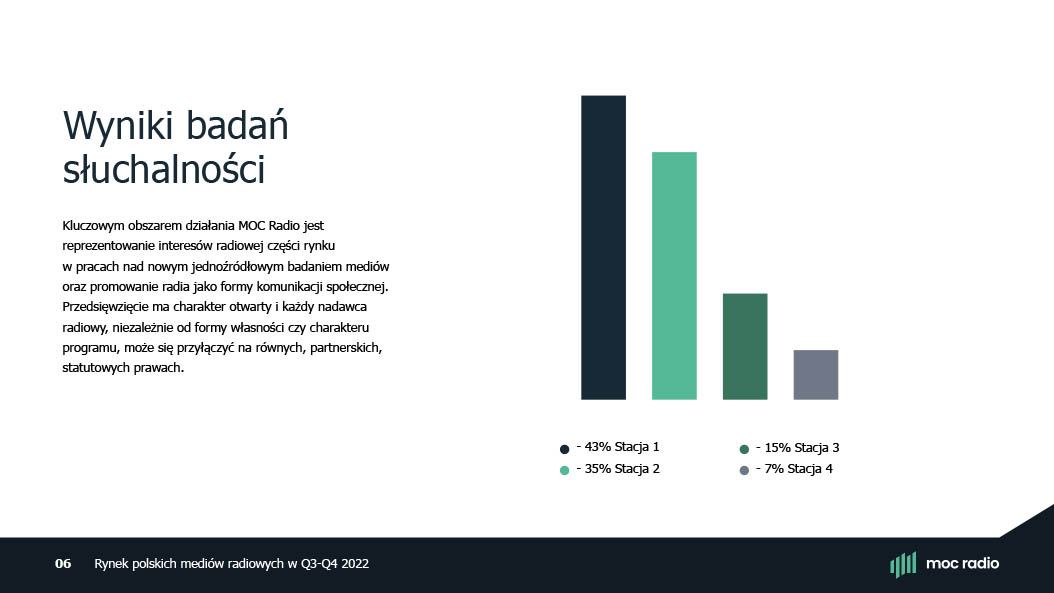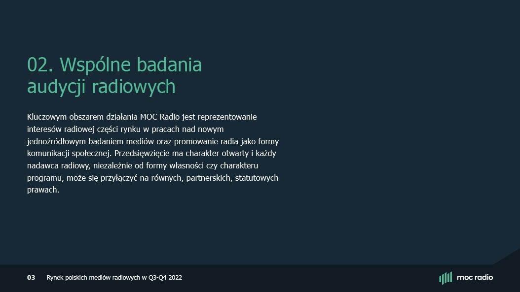 Polskie Radio, together with its regional radio stations, established MOC Radio – Association of Radio Media Employers. The organisation brings together and represents 17 entities, and our task was to create a coherent visual communication strategy for it.